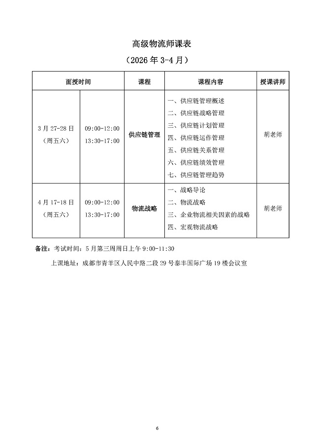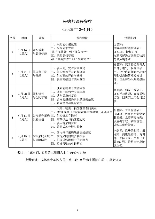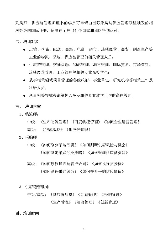 2026年春季物流师、采购师、供应链管理师 认证培训的通知