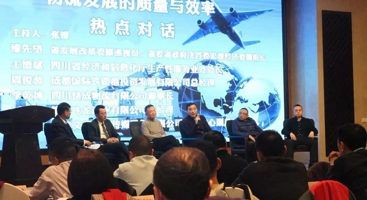 随后,张锦教授主持了“物流发展的质量与效率”热点对话。省发展改革委原巡视员、省委省政府决咨委委员漆先望,成都国际铁路港投资发展有限公司总经理周俊波,四川快成物流有限公司董事长李乾坤,德阳飞龙运业有限公司总经理刘宏彬,新华文轩出版传媒股份有限公司物流中心副总经理颜健围绕着“物流发展的质量与效率”从政府对优化物流业营商环境的举措、物流企业的模式创新、管理创新、技术应用创新和效率提升、降低物流资金和时间成本以及调整运输结构等热点为四川物流业的发展把脉,找方向。