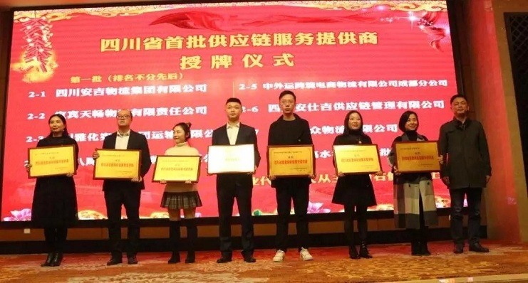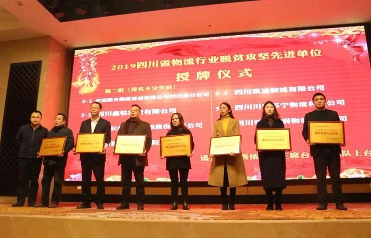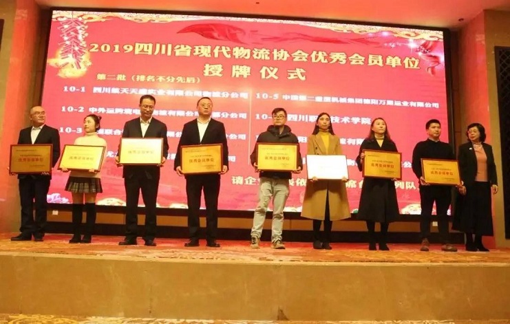 最后,会议举行了隆重的表彰授牌仪式,张君顾问主持授牌仪式。授牌表彰四川铁投广润物流有限公司等16家企业为“四川省首批供应链服务提供商”,四川安吉物流集团有限公司等20家单位为“2019四川省物流行业脱贫攻坚先进单位”,冉富民等10位同志为“2019四川省物流行业十大青年人物”,中铁快运股份有限公司成都分公司等10家单位为“2019四川省物流行业十佳成长型企业”,中国铁路成都局集团有限公司等48家单位为“2019四川省现代物流协会优秀会员单位”,中铁二局集团物资有限公司等45家单位为“2019四川省优秀国家A级物流企业”。