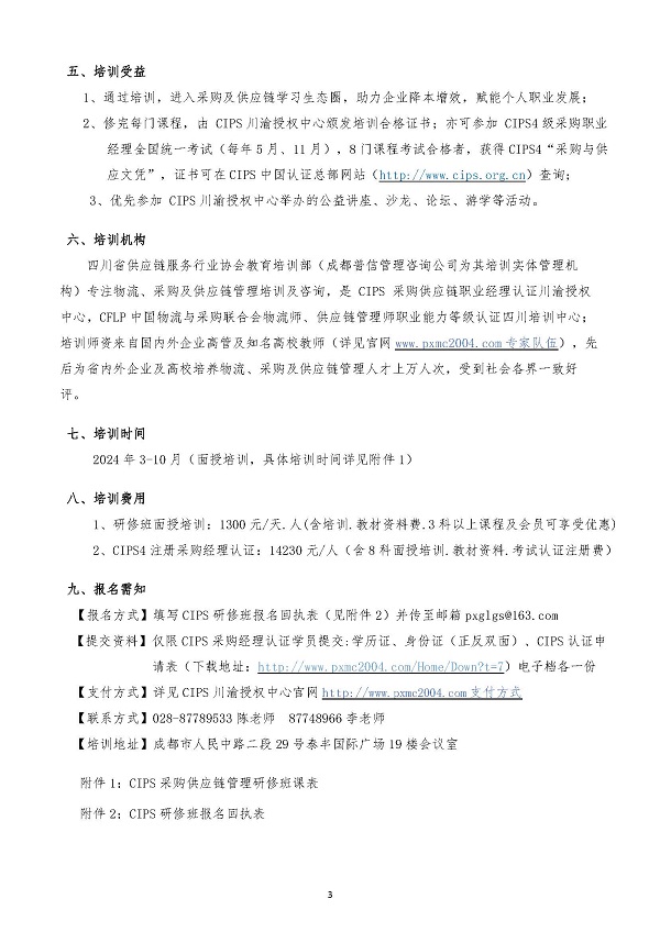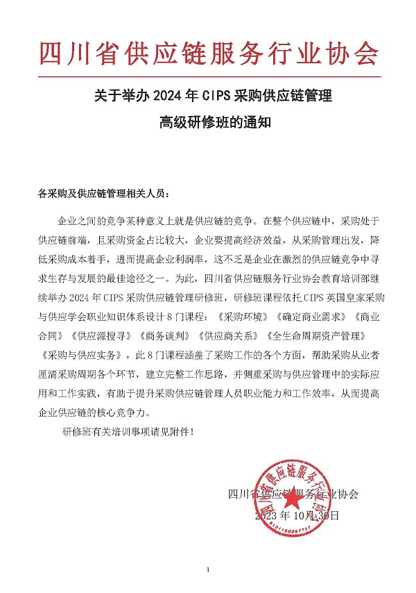 关于举办2024年CIPS采购供应链管理高级研修班的通知