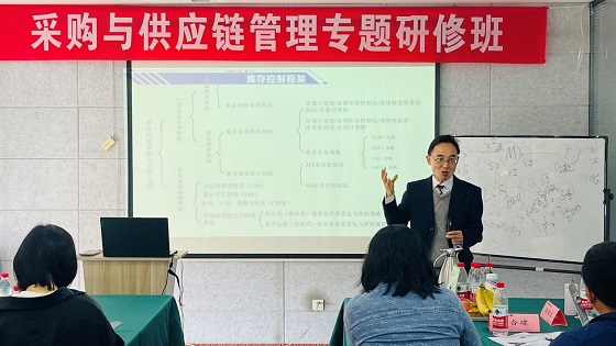 在上午的课程中,胡教授系统讲解了SCOR模型的三个层次及其在采购场景中的具体应用方法。围绕供应链库存控制框架模型,课程进一步展开了对协同库存控制的深度解析,涵盖VMI(供应商管理库存)、JMI(联合管理库存)以及多级库存优化与控制策略。针对供应链中普遍存在的“牛鞭效应”——需求信息在传递过程中被逐级放大的典型问题,胡教授从成因机制到减弱对策进行了专业拆解,帮助学员建立起识别与干预需求扭曲的系统能力。在协同供应链构建方面,重点分析了VMI与CPFR(协同式供应链库存管理与补货计划)两大关键抓手,阐明采购在保障高效供给与实现跨企业协同中的实际作用机制。