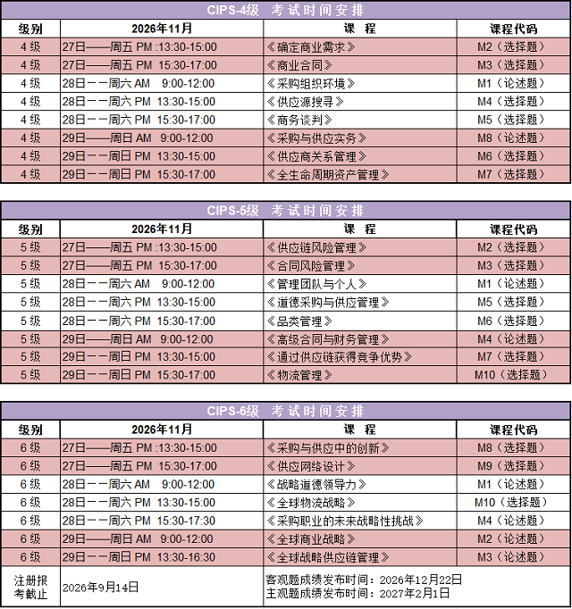 2026下半年CIPS考试计划表